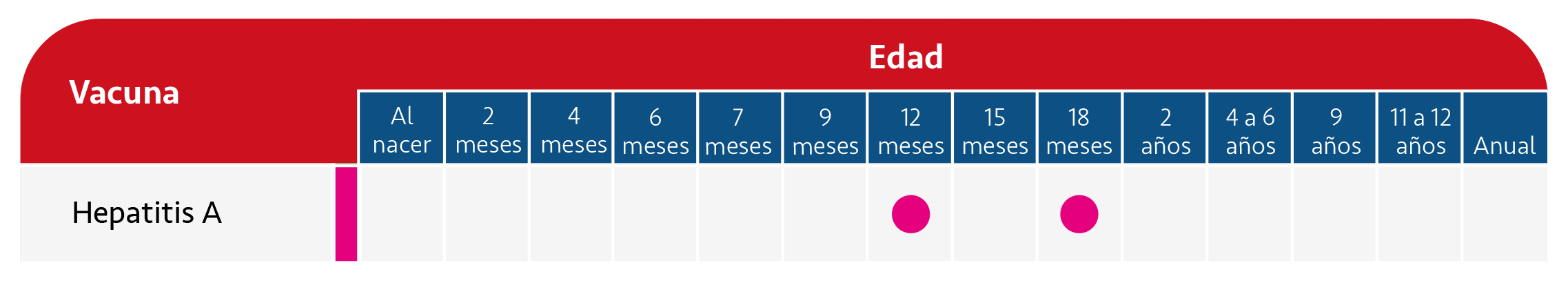 Se recomienda su aplicación a todas las personas a partir del año de edad, se aplican 2 dosis a los 12 meses de edad y a los 18 meses de edad.