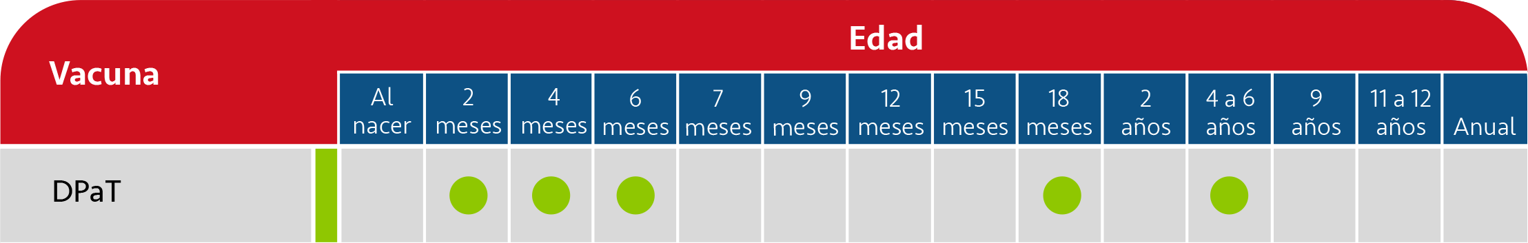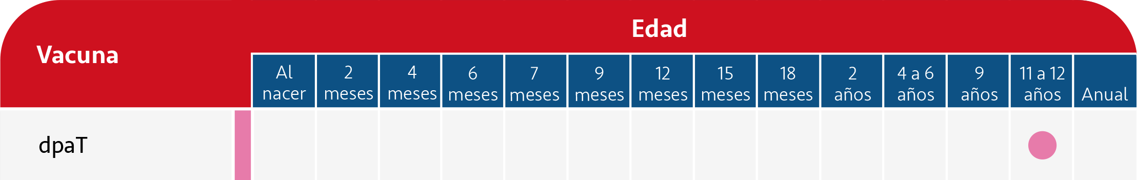 En la preadolescencia se administra otra dosis a los 12 años de edad en la que debemos usar la vacuna de baja carga antigénica el toxoide diftérico combinada con el toxoide tetánico y pertussis (dpaT)
